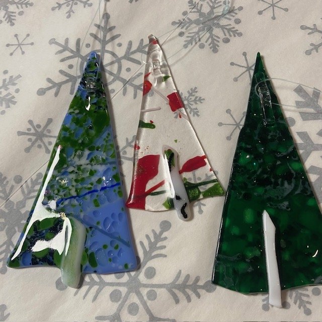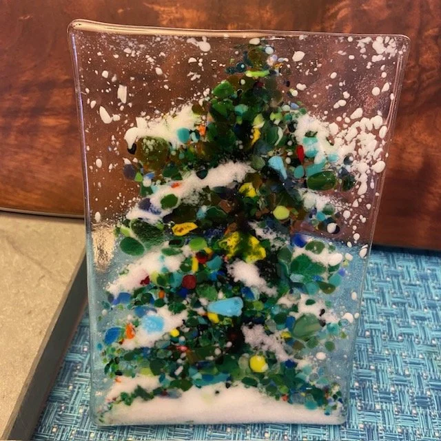 Fred Altaffer resin and dichroic glass trees $25 (front)