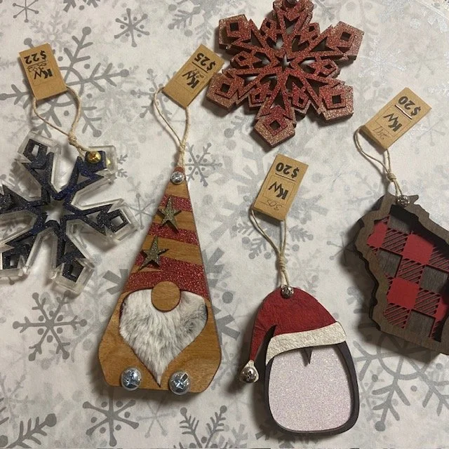 Hand painted ornaments by Kay Thorsbakken $35-$40